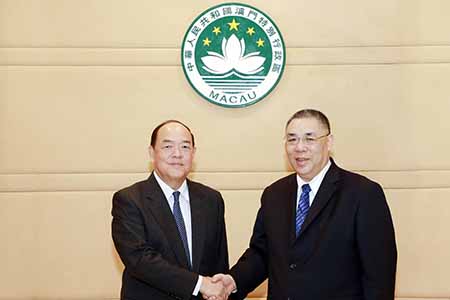 【特訊】行政長官崔世安昨(廿六)日上午在政府總部與第五任行政長官候任人賀一誠先生會面,雙方均表示會保持良好溝通與互相合作,共同努力完成政府換屆交接工作。