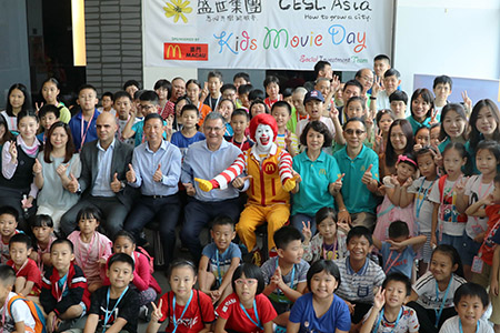 盛世集團昨日舉辦「盛世兒童電影日」,邀請四間本地社福機構約一百二十人參與。盛世集團董事主席及行政總裁田達德、金濠漢堡人力資源助理總監郭綺華等嘉賓出席。