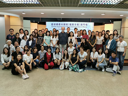 【特訊】為提升本澳助人工作者在接觸與處理精神及心理創傷個案時,具備更廣闊的視野以及不同輔道技巧,為創傷治療領域引入新方法。澳門心理衛生專業協會邀請擁有四十多年臨床經驗的教授來澳,舉辦「體感療癒個案示範大師班」,合共六十多名來自港澳及內地的學員參與,並完成課程取得證書。