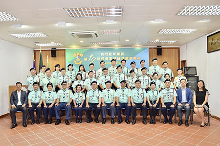 就職典禮於八月三十一日傍晚六時在童軍總會禮堂舉行,會員大會主席梁少培首先代表會長馬有恆向新屆領導成員祝賀及勉勵,希望大家不忘初心,迎接未來的機遇與挑戰,將童軍運動發揚光大。他表示,童軍總會成立至今已三十多年,一直秉承創會宗旨,與政府緊密配合,舉辦豐富多元的訓練活動,以及參與世界各地童軍活動,拓闊童軍視野,為澳門發展培養更多守紀律、富有責任感及專業技能的優秀年輕新一代。