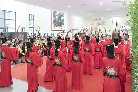 開幕式上,宋永華與一眾嘉賓向孔子畫像敬獻花籃,並行四拜禮。隨後,澳大孔子學院“文化形象大使禮儀團”身穿傳統祭服,配以祥和典雅的禮樂,展示莊重典雅的佾舞,向至聖先師表達崇敬,體現澳大學子對“仁、義、禮、知、信”校訓內涵的感悟。澳大其後向中國美術家協會理事、山東省美協名譽主席張志民及其後學毛洪偉、門生張勤之和董剛,以及蘇州市委統戰部副部長金國強,頒發收藏證書,鳴謝雙方贈送的山水畫作“中華泰山”和非遺藝術作品“磚雕”。