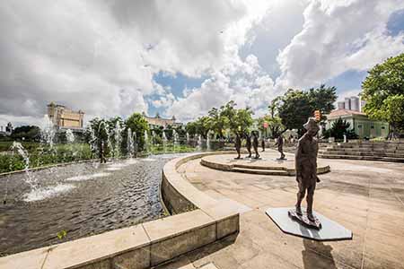 “藝文薈澳”以全城藝術節慶的方式提升城市體驗,當中包括帶來多件戶外裝置藝術,由銀河娛樂集團支持、本地藝術家黃家龍創作的共24尊雕塑“踱步者”,在龍環葡韻以抽象形態演繹葡萄牙詩人佩索亞的不同形象分身;由澳門博彩股份有限公司支持、北京藝術家于凡創作,在南灣•雅文湖畔展出的“銀鬃馬五號”以亮麗的汽車噴漆粉飾銅製雕塑,形態獨特,令人耳目一新;而由永利澳門有限公司支持、香港藝術家莫一新的不鏽鋼雕塑“念悠悠”在澳門藝術博物館周邊展出,探討環保的重要性。上述三件戶外裝置展期至10月6日。