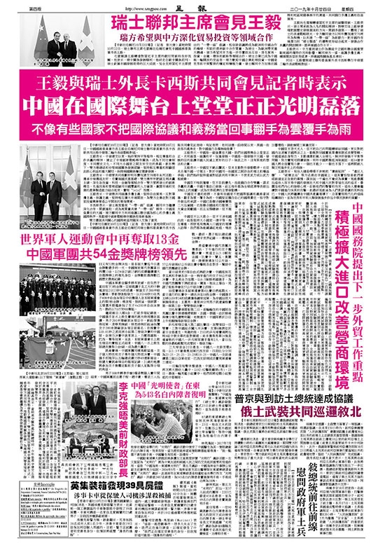 王毅與瑞士外長卡西斯共同會見記者時表示 中國在國際舞台上堂堂正正光明磊落 不像有些國家不把國際協議和義務當回事翻手為雲覆手為雨