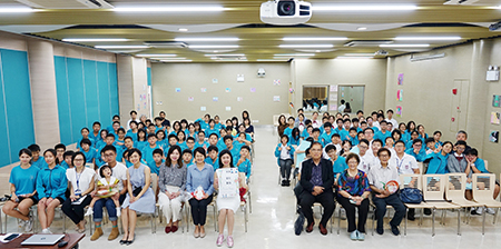 學校特意安排學生與鄭櫻楠交流互動,鄭女士以“鄭觀應——盛世危言,買辦救國”為題,分享鄭觀應先生愛國救國、商戰救國的精神,以及鄭氏的家風家訓,並寄語學生和她一樣作鄭觀應思想的傳承者和實踐者,為振興中華民族和澳門特別行政區而努力奮鬥。該校中葡雙語班的學生藉此機會向嘉賓介紹在學校學習有關鄭觀應的生平、事跡和著作等的各種途徑,並展示了他們以葡語介紹鄭觀應的學習報告;高中二年級的學生則以普通話朗讀了鄭觀應的著作《盛世危言》中《學校》的一段。該校學生爭取機會與鄭女士交流,並送上親自製作的紀念品,場面溫馨感人。期間,陳樹榮、鄭國強、梁金玉分別向學校致送有關鄭觀應研究的著作,勉勵學生多閱讀有關鄭觀應的事跡和著作,將鄭觀應精神發揚光大。