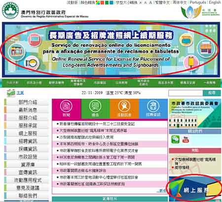 【特訊】市政署秉持以民為本的精神,持續優化廣告准照之行政手續,今年正式推出“長期廣告及招牌准照-網上續期”服務,方便持牌人透過網上系統續期,不受辦公時間限制且無須親臨服務中心,並可自行列印相關之續期准照。