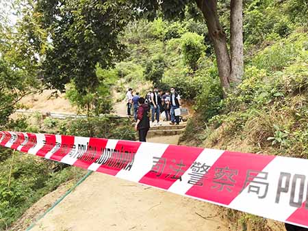 女死者姓梁,五十三歲。昨日早上約七時,司警一名刑事偵查員在九澳高頂馬路「路環東北步行徑」運動期間,發現梁女用一條頸巾掛在樹上,全無反應,懷疑吊頸自殺身亡,該名偵查員隨即通知上級派員到場調查。大批司警人員到場拉起封鎖線,啟動現場勘查程序,於現場地上發現有血跡,梁女身上亦發現其他傷痕,沒有遺書。