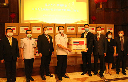 儀式上,中國銀行、中國亞洲經濟發展協會、《中國—東盟博覽》雜誌社等機構共向泰方捐贈202箱抗疫物資,包括N95醫用口罩、普通口罩、防護服、護目鏡等。