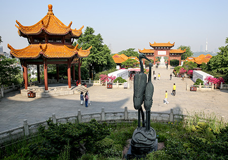 再臨黃鶴樓,樓前已是繁花似錦,登頂俯瞰武漢三鎮,遠處長江大橋上車流滾滾,“惟見長江天際流”的壯美景色盡收眼底。