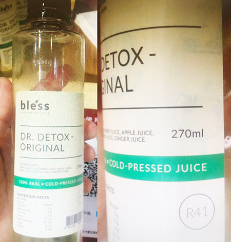 市政署透過恆常食品事故監察系統,獲悉香港食物安全中心公佈,於一個香港生產的果汁飲品樣本中驗出含十億分之六十三的展青霉素。涉事產品名稱為「DR.DETOX-ORIGINAL」,品牌是bless,原產地為香港,香港分銷商為Bless International Group Limited,容量是每瓶二百七十毫升,此日期或之前食用:二○二○年七月五日。
