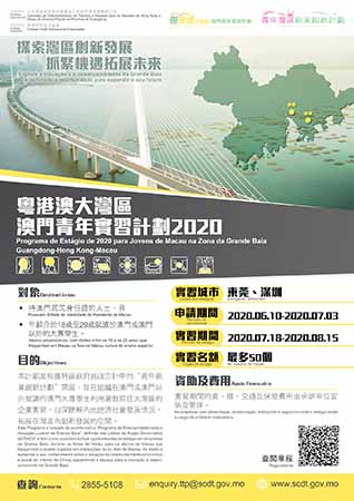 【特訊】人才發展委員會和廣東省人民政府港澳事務辦公室聯合舉辦的“粵港澳大灣區澳門青年實習計劃”(下稱“計劃”)自6月10日起至7月3日接受報名。該計劃旨在讓澳門青年在暑假期間前往大灣區城市的企業實習,加深對內地經濟及社會發展的瞭解,拓展在灣區內創新發展的空間。
