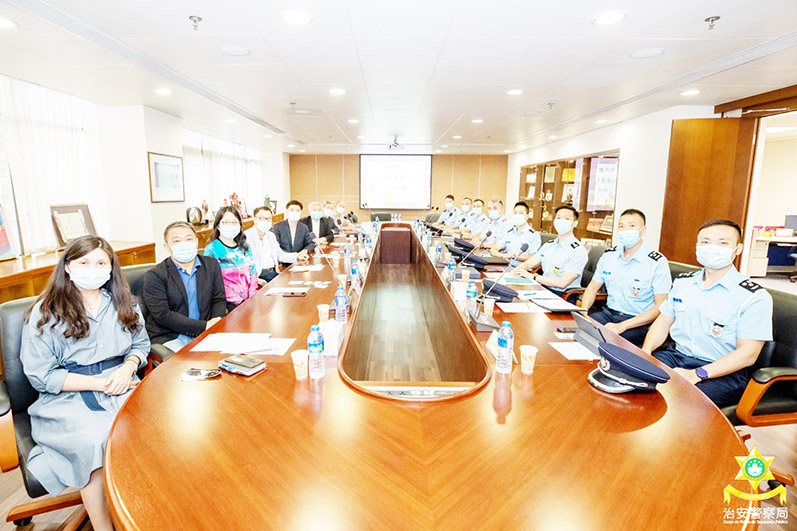 會上,治安警察局副局長梁慶康感謝澳門餐飲業聯合商會對警方工作的大力支持,並向澳門餐飲業聯合商會代表介紹了近年「社區警務聯絡機制」的發展情況,探討與商會建立「社區警務聯絡機制」的合作方式,冀透過商會協助警方向會員宣傳防罪、滅罪信息,將防罪資訊進一步向社區延伸,優化預防犯罪的宣傳工作。隨後本局代表就餐飲業經營所涉及到的法律、防罪資訊及交通情況作出介紹,如:《聘用外地僱員法》的新修訂規定、聘用外地僱員的程序、新式樣之外地僱員身份認別證和逗留許可憑條、近期罪案類型、食肆周邊交通情況及餐飲外送注意事項等等,並就有關內容與商會共同探討,藉此提升僱主的防罪及守法意識。