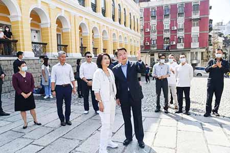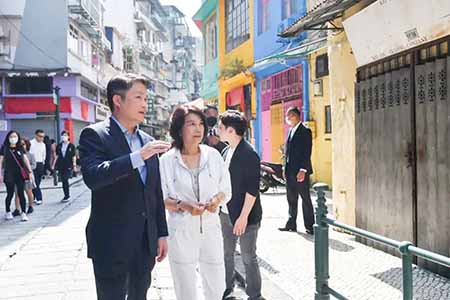 經濟財政司司長李偉農與珠海企業代表董明珠一行,前日(十七日)先後前往大三巴、戀愛巷、關前街及十月初五街一帶等景點和特色街區,董明珠表示,如果今年不是受到疫情影響,相信有更多人來到澳門。李偉農與董明珠一行又與舊區商戶交流,有餅業負責人稱,本澳市場細,即使原料不比別人差,但生產力滯後,造成市場份額難於擴大;李偉農稱,現在產品需要線上化,不能限制在澳門的市場,要利用線上平台推廣到大灣區。