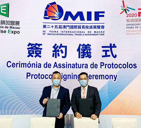 美高梅早前在澳門貿易投資促進局的引介下,與濠概醫療用品有限公司洽談合作。由於該公司生產的口罩是「澳門製造」,並取得澳門、內地、歐洲及美國認證機構的品質檢測認證,美高梅遂決定向他們採購30萬個口罩,作爲雙方合作的起點。雙方在今天舉行的「第二十五屆澳門國際貿易投資展覽會」上簽署採購口罩備忘錄,在澳門貿易投資促進局行政管理委員會主席劉偉明、中央人民政府駐澳門特別行政區聯絡辦公室經濟部副部長朱宏及澳門中華總商會總務部副部長陳隆成等嘉賓的見證下,由美高梅採購及供應服務副總裁鄭忠勇以及濠概醫療用品有限公司董事長陳子明代表簽署。