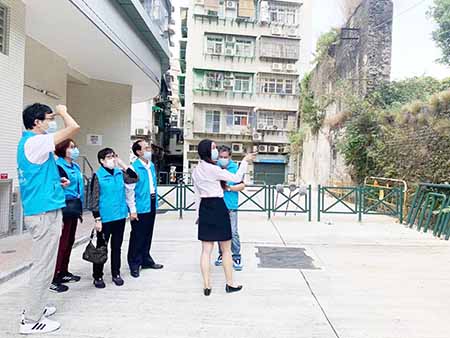 【特訊】日前,下環坊會聯同市政署綜合服務及質量監察廳市民綜合服務處轄下之中區市民服務中心職務主管何桂珍到區內巡區,建議將下環社會服務大樓周邊空置地闢作休憩區,以及在龍頭左巷坡度大路段加裝扶手欄杆,亦反映綠豆圍空置建築物內因雜草叢生、垃圾堆積而嚴重影響社區環境等問題。
