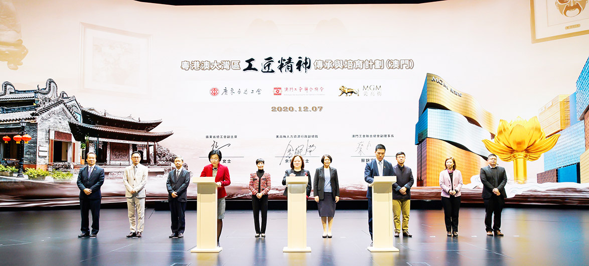 【特訊】美高梅一向堅持敬業、精益、專注及創新的精神,與工匠精神內涵同出一轍。隨著國家倡導推動工匠精神,美高梅聯同廣東省總工會及澳門工會聯合總會合辦「粵港澳大灣區工匠精神傳承與培育計劃(澳門)」啟動儀式暨「南粵工匠專場文化講座」。在一眾嘉賓見證下,三方簽署合作備忘錄,透過培育計劃,將工匠精神納入美高梅的職業培訓項目,並配合不同工種的需要,以多元、生動的方式提升員工的技能和視野。另一方面,為向本澳年青一代灌輸工匠精神,美高梅亦與工會和學校合作,將培育計劃延伸至學校,為澳門未來建立具有實力和工匠素養的人才儲備奠下堅實基礎,助力人文灣區建設。