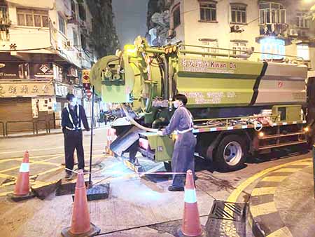 市政署於每年風雨季來臨前重點跟進經常淤塞的下水道狀況,確保渠網排澇效能正常,去年引入外判下水道影像記錄及清渠服務,藉以加強對渠網精準檢查、清淤及養護。首階段對經常淤塞的下水道展開工作,並已完成北京街與上海街部分內街之下水道清淤。