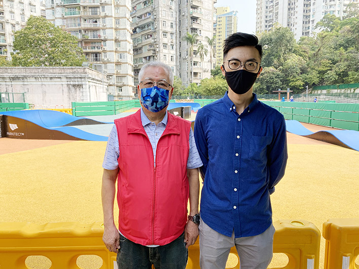 【特訊】近日,二龍喉公園Pump track(單車軌道)正式對外開放,街坊總會中區辦事處主任程順明和水荷雀坊會副理事長黃煥生到場了解情況,並促請有關當局完善兒童遊樂區設施,例如增設飲水設備和救護站,給予市民一個安全舒適的休憩空間。