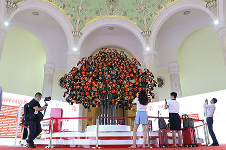 中國國務院國資委科技創新和社會責任局副局長張曉紅表示,中核集團展示的是已經成功地走出海外,具有完全自主知識產權的三代核電技術的華龍一號。航天科技、航天科工分別展示的是嫦娥5號的著陸器、上升器和快舟運載火箭、行雲衛星等航天裝置。