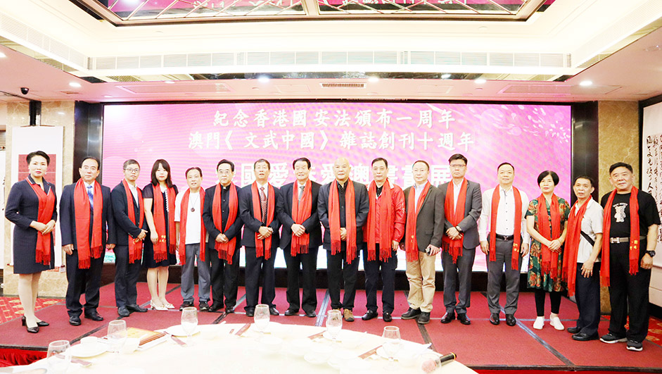 【特訊】為了弘揚正能量,唱響愛國愛港愛澳主旋律,堅決支持「一國兩制」國策行穩致遠,讓香港國安法潛移默化深入人心,在舉國歡慶中國共產黨百年華誕之際及香港國安法頒佈一周年前夕,國際武道聯合會、澳門文武中國雜誌社和中國武術家書畫協會聯合舉辦的「愛國愛港愛澳書畫展」,昨(六月二十二日)在帝濠酒店4樓宴會廳拉開帷幕。來自粵港澳大灣區及內地有一定影響力的書畫家近百幅書法、國畫、油畫、剪紙作品參加了展覽。