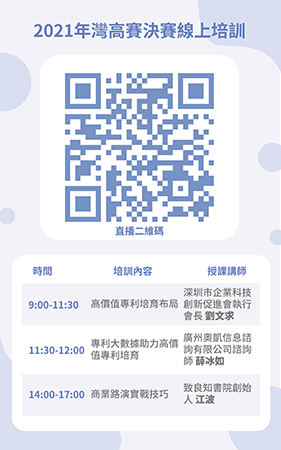 為提升本澳創新主體對高價值專利的培育與布局能力,主辦單位將於2021年10月15日早上9時至下午5時開展線上培訓,有興趣參加培訓人士,可透過鏈結(https://k.vkaijiang.com/product/course487031)或掃描二維碼觀看。