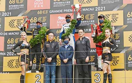 【特訊】第六十八屆澳門格蘭披治大賽車昨日最後一天賽事,在大灣區GT盃,中華台北車手張嗛尚,連贏兩個回合冠軍,亞軍是中國車手謝安,香港車手莫梓諾得季軍。