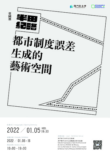 【特訊】澳門基金會主辦之澳門青年藝術家推廣計劃:「半田紀略──都市制度誤差生成的藝術空間(蔡國傑)」展覽,將於2022年1月5日(星期三)下午六時三十分在澳門教科文中心展覽廳及多功能廳揭幕,同場首發《半田紀略──都市制度誤差生成的藝術空間(蔡國傑)》作品集。蔡國傑是澳門青年藝術家推廣計劃的第5位藝術家。
