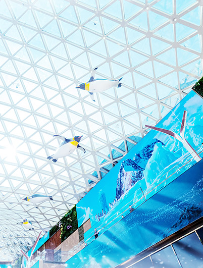 新春期間,廣場於周末特設趣味十足的冰壺發「動」體驗,費用全免。活動現場更有專人從旁指導,讓賓客感受這項投擲性冰上競技運動項目的魅力,一同投入冬日運動氣氛。與此同時,視博廣場繼續於每天下午一、三、五及七時上演深受歡迎的《空中海洋秀》。冬日期間的新表演隊伍—飛翔企鵝為賓客於天幕下飛天暢游,配合廣場內25個巨型LED顯示屏環迴播放的冰雪主題動畫,讓賓客彷如置身於極地海洋世界之中,歡樂喜慶氛圍隨即充斥廣場的每個角落。