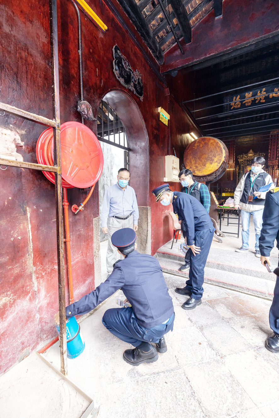 【特訊】為加強廟宇在農曆年節日期間的消防安全,文化局聯同消防局日前(1月25日至27日)到全澳各所廟宇,排查廟內消防及用電安全隱患,加強與廟宇管理者溝通,呼籲做好節日期間廟宇的消防安全應對工作,以及須遵守衛生部門防疫指引作出妥善安排。