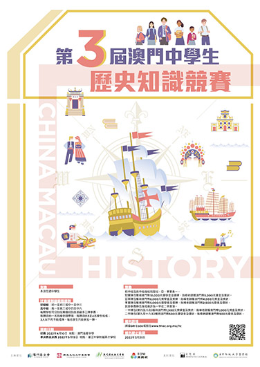 【特訊】為提高澳門中學生對中國歷史文化的興趣和對本地歷史的了解,以及向市民大眾普及歷史文化教育,澳門基金會及其歷史文化工作委員會、澳門歷史教育學會及澳門廣播電視股份有限公司聯合舉辦“第三屆澳門中學生歷史知識競賽”,由即日起至2022年3月31日接受報名,歡迎學校組隊參加。