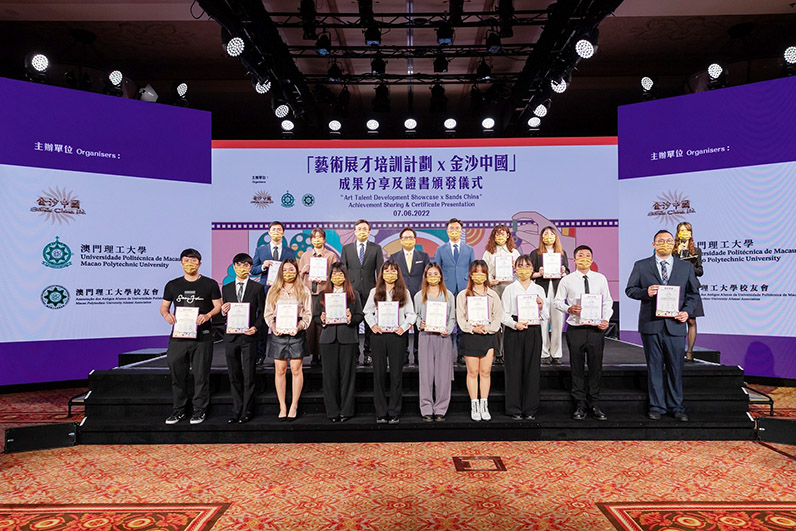 完成項目的學員周二獲澳門理工大學校長嚴肇基教授、澳門理工大學校友會理事長黃宇棋及金沙中國有限公司總裁王英偉博士頒發證書;其後,一眾學員向在場人士分享他們在為期六個月的培訓中所製作的17件作品及其創作理念,以及導師所給予他們的指導。