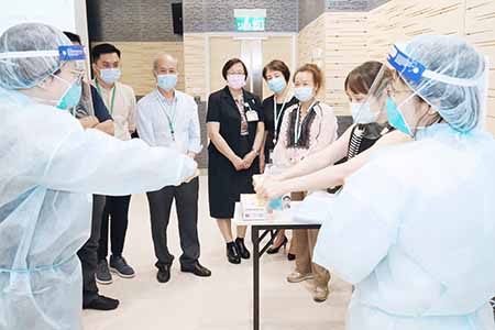 在首場基礎感染控制培訓活動期間,感染控制小組導師介紹了醫療人員的個人及環境消毒注意事項、抗疫區域的感染控制分區分級情況,以及對穿脫防護裝備的步驟進行詳細講解,期間每位學員都可親身體驗穿脫防護裝備,並獲得導師們的細心指導及糾正。學員們表示從中明白到感染控制是有效抗疫的基礎,做好感染控制措施才能保護自己及團隊,獲益良多。