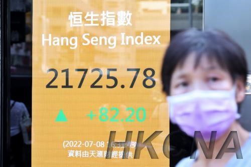 【新華社香港7月8日電】香港恒生指數8日漲82.2點,漲幅0.38%,收報21725.78點。全日主機板成交1058.54億港元。