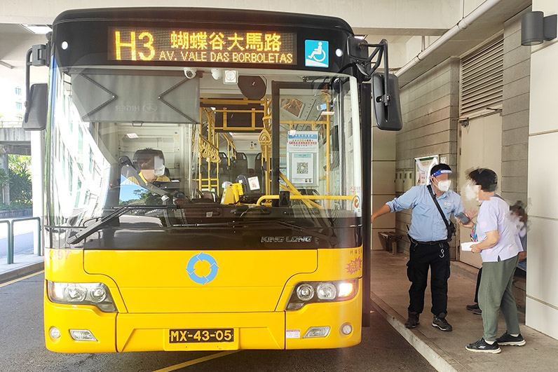 【特訊】7月11日零時至18日零時本澳進入「相對靜止期」,維持最基本公共交通服務。新福利全力配合政府防疫政策,開出7條線路(25、28C、33、102X、AP1、H3、MT4),前線人員一如既往做好防疫,積極協助符合條件的市民搭乘巴士,昨(12)日進入措施生效的第二天,至今新福利巴士全體線路整體運作暢順。