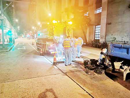 此外,市政署亦派員加強巡查及清理路邊集水井口,使下水道處正常運作狀態。同時,密切監察各雨水泵站及箱涵渠運作,加強清理泵站格柵、檢查水泵機組、電動水閘、後備電源、遠程監控系統的運作情況等。