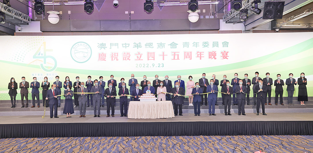 【特訊】澳門中華總商會青年委員會在嚴格遵守特區政府有關防疫措施的指引下,於昨(23)日假澳門旅遊塔舉行中總青委會慶祝設立四十五周年晚宴,出席的主禮嘉賓有全國政協副主席何厚鏵,立法會主席高開賢,中央駐澳聯絡辦公室協調部副部長仇昱,中總永遠會長馬有禮、會長崔世昌,教育及青年發展局局長龔志明,經濟及科技發展局局長戴建業,澳門貿易投資促進局代主席余雨生,澳門基金會行政委員會委員黎振強,中總副會長何超瓊、理事長馬志毅,中總青委會創會主任曾志揮、前主任莫志偉、主任馬志達、副主任余昇。