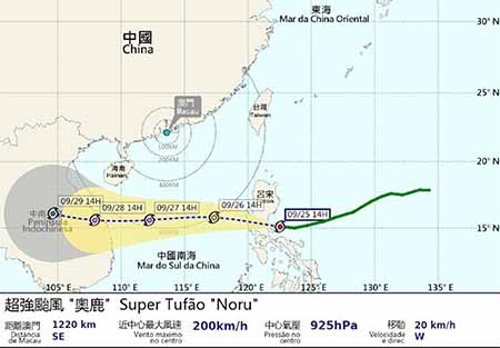 氣象局表示,位於菲律賓以東的熱帶氣旋「奧鹿」將於週一早上進入南海並逐漸增強,預料向西移動橫過南海中部,在澳門以南約七百公里範圍內掠過,大致趨向越南。加上東北季風南下的影響,週二開始本澳風力將間中達六級及有陣風,間中有驟雨。而本週後期南海將有另一低壓區發展,不排除亦會發展為熱帶氣旋。氣象局呼籲市民留意最新天氣資訊。
