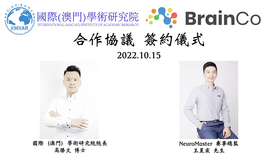 【特訊】日前,國際(澳門)學術研究院與浙江強腦科技有限公司在線上舉行合作協議簽約儀式,研究院院長高勝文、強腦科技有限公司代表兼NeuroMaster賽事總監王昱宸分別代表兩機構簽署合作協議,雙方期望進一步加強浙澳學術交流,深化浙澳學術合作關係,促進浙澳人工智能領域的研究與發展。