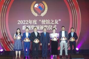 【中新社馬尼拉1月10日電】(張興龍 牛恒佳)中國駐菲律賓使館10日在馬尼拉舉辦2022年度“使館之友”系列獎項頒獎儀式,對大力支持中國駐菲使領館各項工作、致力中菲友好的各界友好人士代表進行表彰。