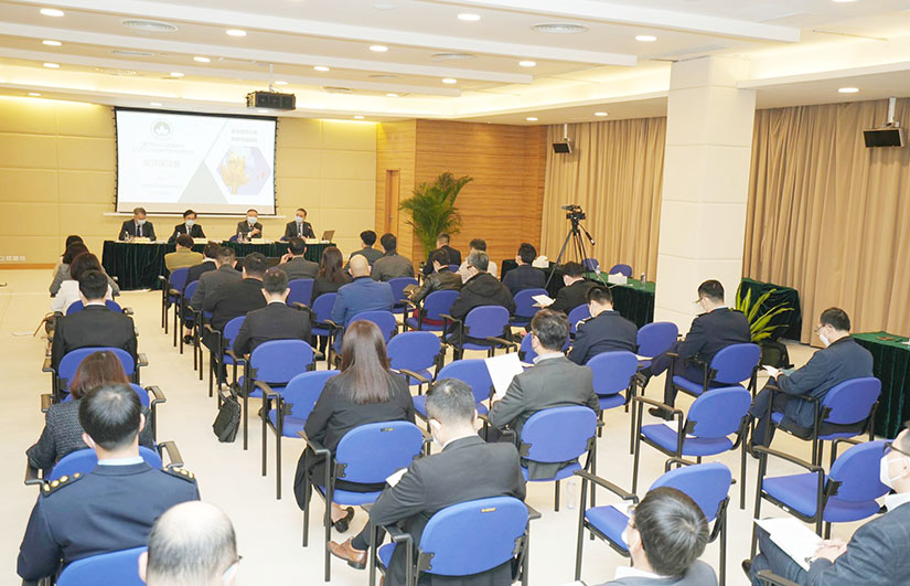 交流座談會於今日上午在政策研究和區域發展局會議室舉行。政發局局長張作文、綜合支援廳廳長黎宇明,以及藥物監督管理局局長蔡炳祥、副局長李世恩等官員出席,與澳門中藥業公會 會長關樹權、澳門中醫藥學會(AIPPMCM)會長石崇榮、澳門理工大學健康科學及體育學院副院長林愛貞、澳門醫務界聯合總會理事長關秉權、澳門西藥業商會會長江瑞翎等十多位社會人士就「澳門藥物及醫療器械上市制度對支持行業發展的作用」這一主題作深入交流。