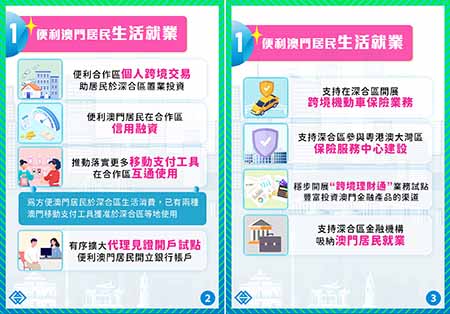 促進民生金融便利;在民生金融方面,《意見》提出打造便利澳門居民生活就業的金融環境,提出多項涉及個人跨境交易、移動支付、信用融資、跨境保險,以及證券投資等民生相關金融業務的支持政策。