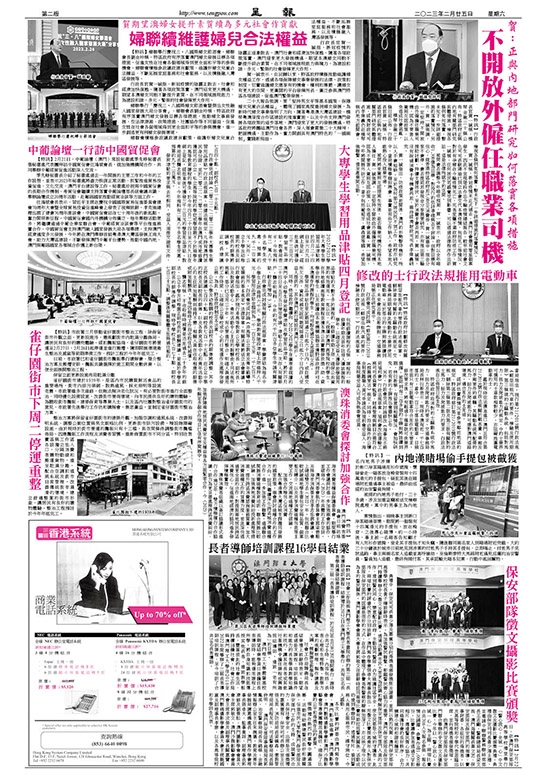 另外,行政會完成討論《非高等公立教育及青年範疇特定職務的基本規定》法律草案,有關法案將送立法會審議。行政會指出,鑑於現行非高等教育公立學校校長、副校長,以及教育活動中心、青年活動中心主任的報酬由不同法規所規範,部分已沿用三十年,有必要進行整合,明確人員適用的工作時間,以確保公立學校或中心的日常運作及處理突發公務。為此,特區政府制定本法案。