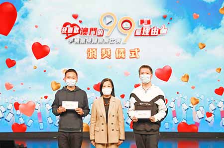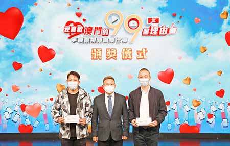 《我喜歡澳門的 99 個理由》之手機微視頻徵集比賽頒獎儀式,將安排於 3 月 5 日在澳廣視電視頻道播出。敬請留意澳廣視各平台宣傳,了解更多節目播出資訊。