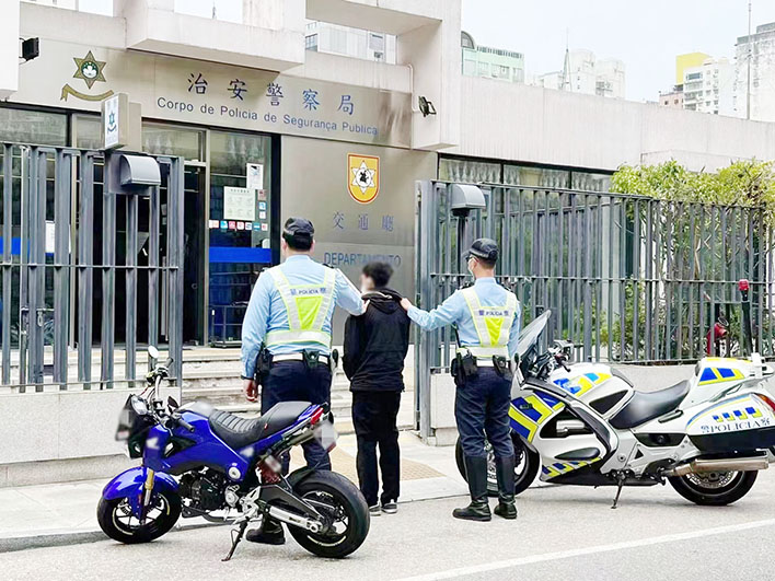 被捕的本澳男子,姓黃,二十多歲,為一名中學生,現涉及危險駕駛被送交檢察院處理。案情指出,前日凌晨零時許,治安警在蓮花海濱大馬路進行查車行動,期間準備截停由涉案黃姓男子駕駛的電單車。黃姓男子未有理會並加速衝路障,警員隨即駕車追截,期間黃姓男子亦衝紅燈,最終在石排灣樂居大馬路將其截獲。經盤問後,黃姓男子供稱早前因多次無牌駕駛被罰,今次見到警員害怕被截獲,於是衝路障逃走。
