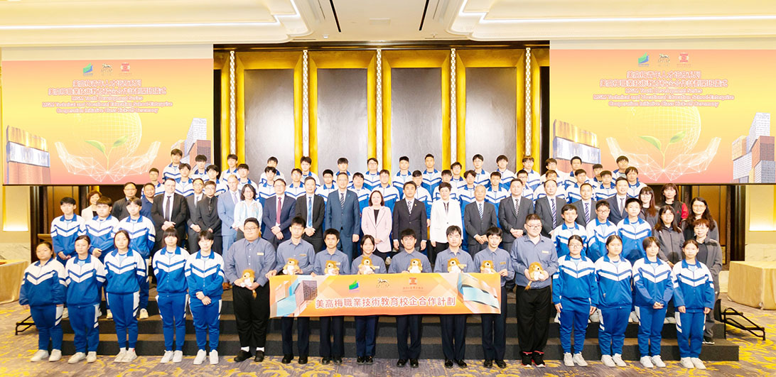 「美高梅青年人才培育系列—美高梅職業技術教育校企合作計劃」開班儀式日前於美獅美高梅宴會廳舉行,出席嘉賓包括:中央人民政府駐澳門特別行政區聯絡辦公室社會工作部處長羅振宇;教育及青年發展局中學教育處處長梁怡安;工聯理事長、澳門特別行政區政府行政會委員李從正;澳門中華教育會會長陳虹;工聯副會長、工聯職業技術中學校監馮家輝;澳門工聯職業技術中學校長呂吉實;美高梅人力資源執行副總裁余婉瑩,以及美高梅人力資源發展及培育副總裁陳來源。此外,活動亦邀請了50多位工聯職中師生一同參與。
