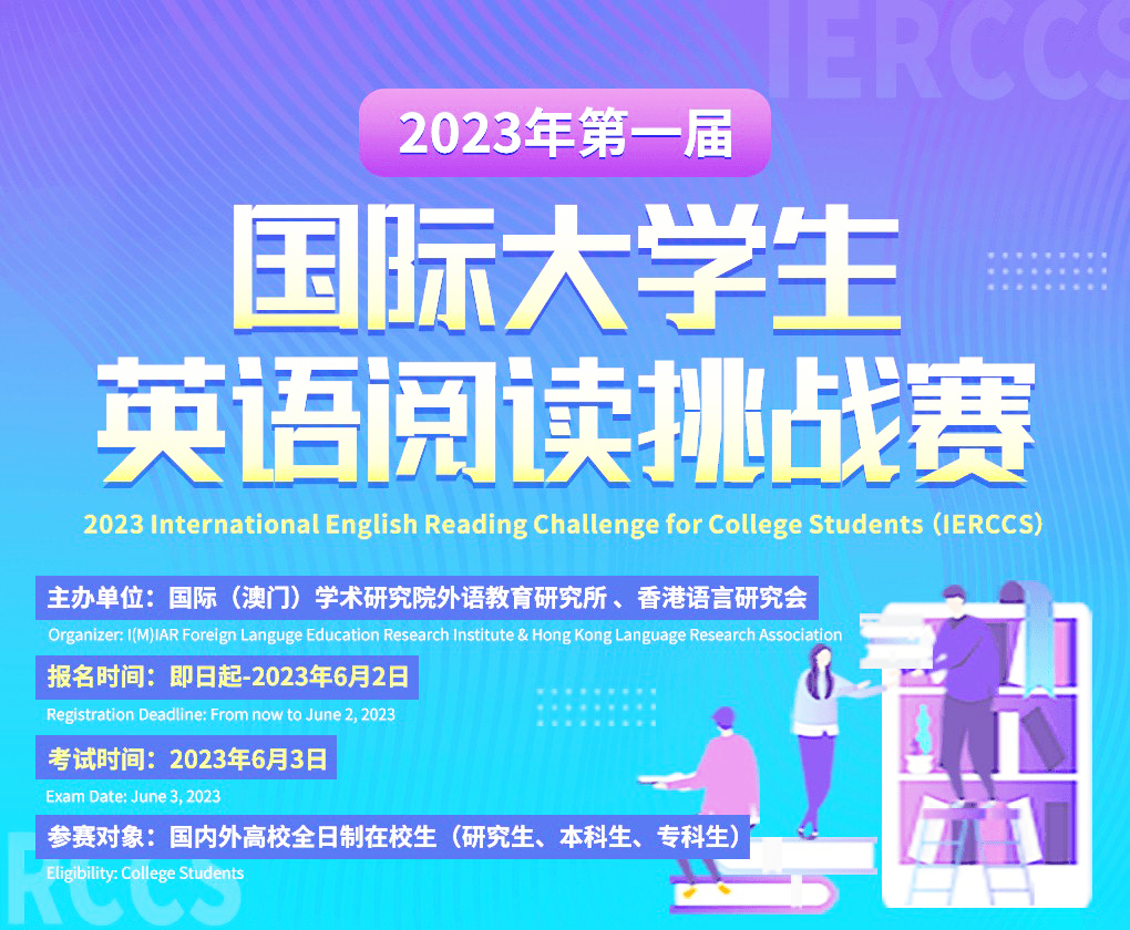 【特訊】英語作為國際主導語言之一,隨着全球經濟一體化,現已成為人類社會各個領域中使用最廣泛的語言。為全面提高大學生英語綜合運用能力,激發大學生學習英語的積極性,推動大學生各階段英語教學品質上一個新台階,國際(澳門)學術研究院外語教育研究所與香港語言研究會聯合舉辦“2023年第一屆國際大學生英語閱讀挑戰賽”(2023 International English Reading Challenge for College Students,簡稱IERCCS)。