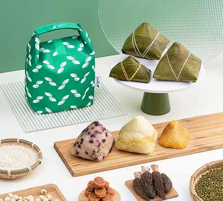 糉薈三珍綠意禮袋;澳娛綜合誠意呈獻三款特色香糉,包括:用料豐富優質、鹹香滋味惹人垂涎的原粒元貝鹹肉糉;集合多款菇菌而成、素食愛好者不容錯過的養生珍菌素糉;以及入口軟糯、齒頰生香、甜而不膩的豆沙梘水糉。特別設計而成的翠綠色禮袋貫徹澳娛綜合的環保宗旨,材質輕巧堅韌。同時,這款禮袋兼具環保食物袋功能,經清洗後能循環使用,與賓客共度每一個美味時刻。