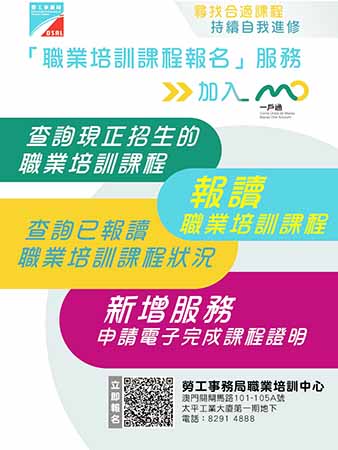【特訊】勞工事務局於8月1日開通一戶通“職業培訓課程報名”服務。公眾可透過該服務查詢培訓課程最新資訊、個人報讀課程狀況及申請電子完成課程證明。
