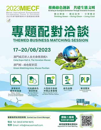 有意參與綠色配對的客商現可掃瞄附圖海報中的二維碼或登入https://www.macaomiecf.com/miecf2023/event/green_matching預先登記,提供配對需求,大會將根據客商的洽談意向,對接合適的合作伙伴,安排現場洽談配對。展會現場提供專業翻譯,綠色配對區內亦有駐場人員可安排業務對接諮詢等配套服務,屆時可與駐場人員接洽。