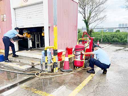 自8月12日起, 消防局持續派員前往各區對工廈、油站、銷售危險品相關產品的商舖、危險品及燃料儲存設施等進行排查,期間對場所或儲存區內的消防設備、儲存數量及周邊環境等進行檢視,以確保危險品及燃料的儲存得到充足的安全保障,同時亦對有關場所及其周邊區域進行消防安全排查,以消除社區的消防安全隱患,截止8月16日已排查各類場所及儲存點共819個。此外,消防局亦向相關業界從業人員及市民講解《危險品監管法律制度》的重點內容,如“危險品的分類”、“具職權公共當局”、“危險品用戶義務”及“危險品的豁免量”等,以便社會大眾更好地履行相關職責及義務,提高對危險品的使用及儲存的安全意識。