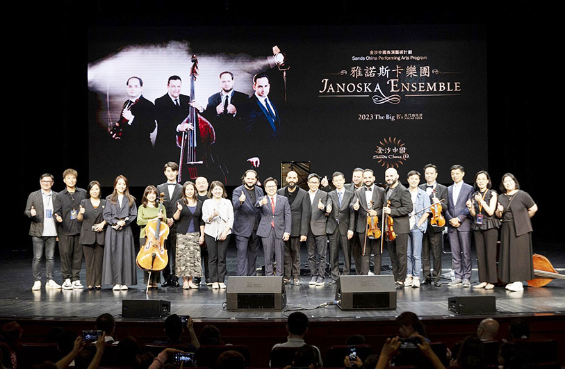 雅諾斯卡樂團周六於巴黎人劇場舉行澳門站巡演的前夕,金沙中國周五特別舉辦大師班,讓一眾來自澳門及香港的優秀年青音樂愛好者與雅諾斯卡樂團進行互動交流,拓闊兩地音樂視野,並為參加者帶來啟發。